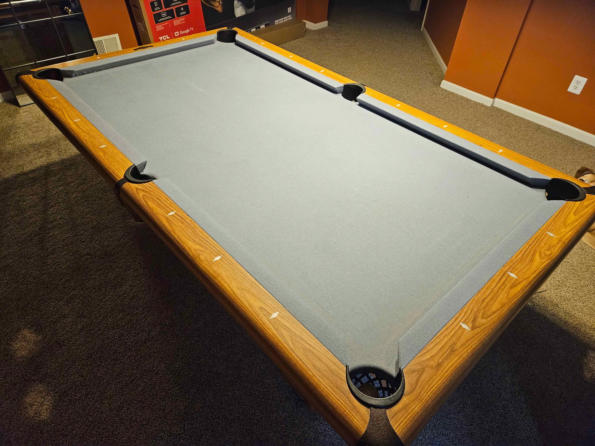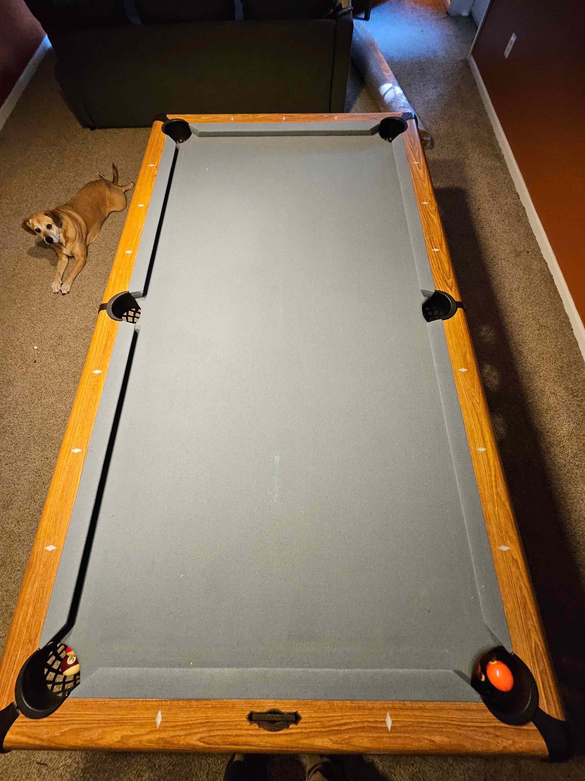 - Cost of the table includes the table and any noted accessories, all move costs to move, setup and level the table within 20 miles of Manassas, VA and optional re-felting of the table upon arrival using Championship Invitational felt with Teflon coating in the color of the buyer's choosing or save $150 off the listed price by reusing the existing felt.