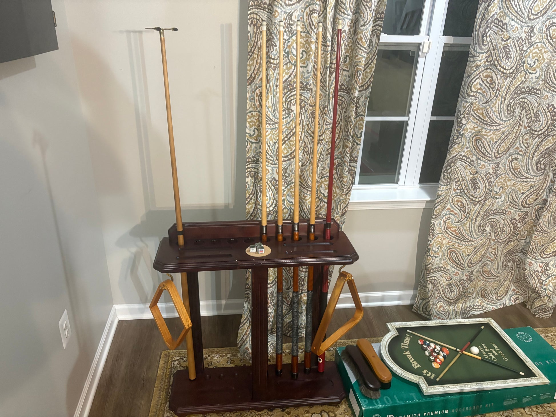 - Accessories Included: Cues, Cue Rack, Pool Picture, Chalk, Brushes, Cover, Balls, Box of Accessories