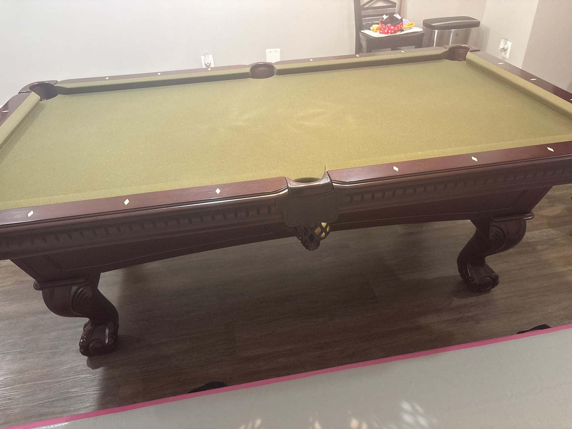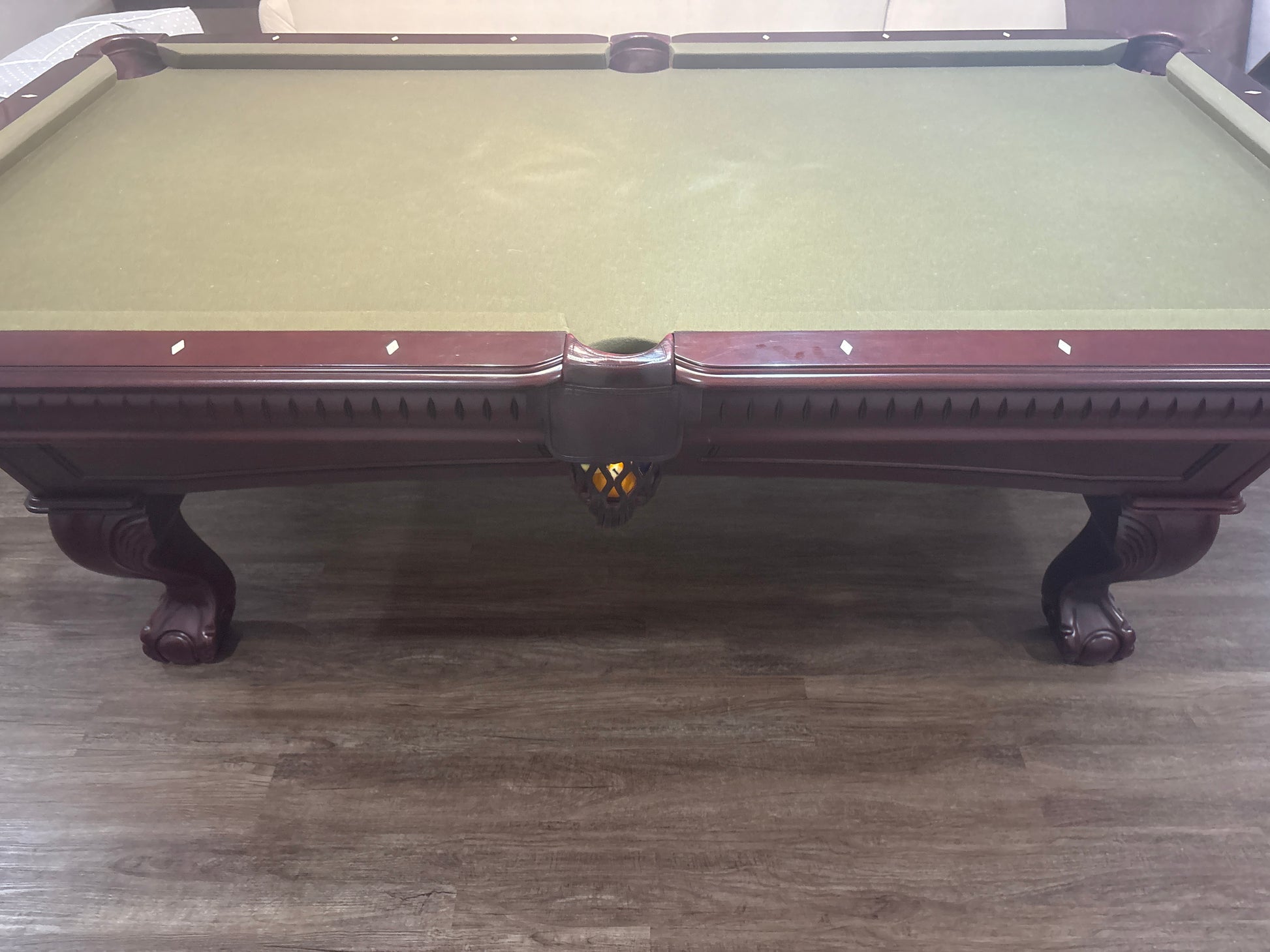 - Cost of the table includes the table and any noted accessories, all move costs to move, setup and level the table within 20 miles of Haymarket, VA and optional re-felting of the table upon arrival using Championship Invitational felt with Teflon coating in the color of the buyer's choosing or save $150 off the listed price by reusing the existing felt.