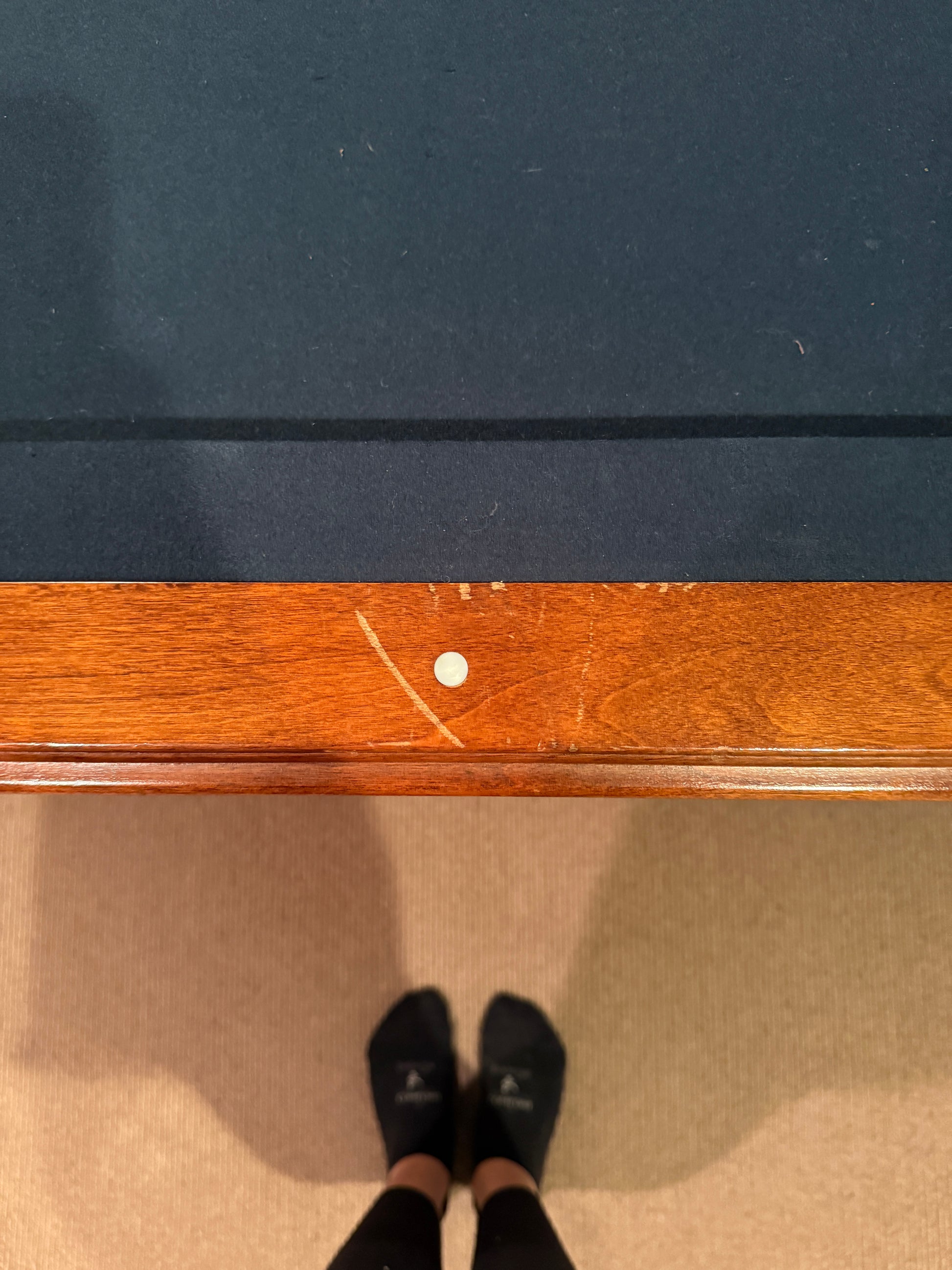 - Cost of the table includes the table and any noted accessories, all move costs to move, setup and level the table within 20 miles of Arlington, VA and optional re-felting of the table upon arrival using Championship Invitational felt with Teflon coating in the color of the buyer's choosing or save $150 off the listed price by reusing the existing felt.