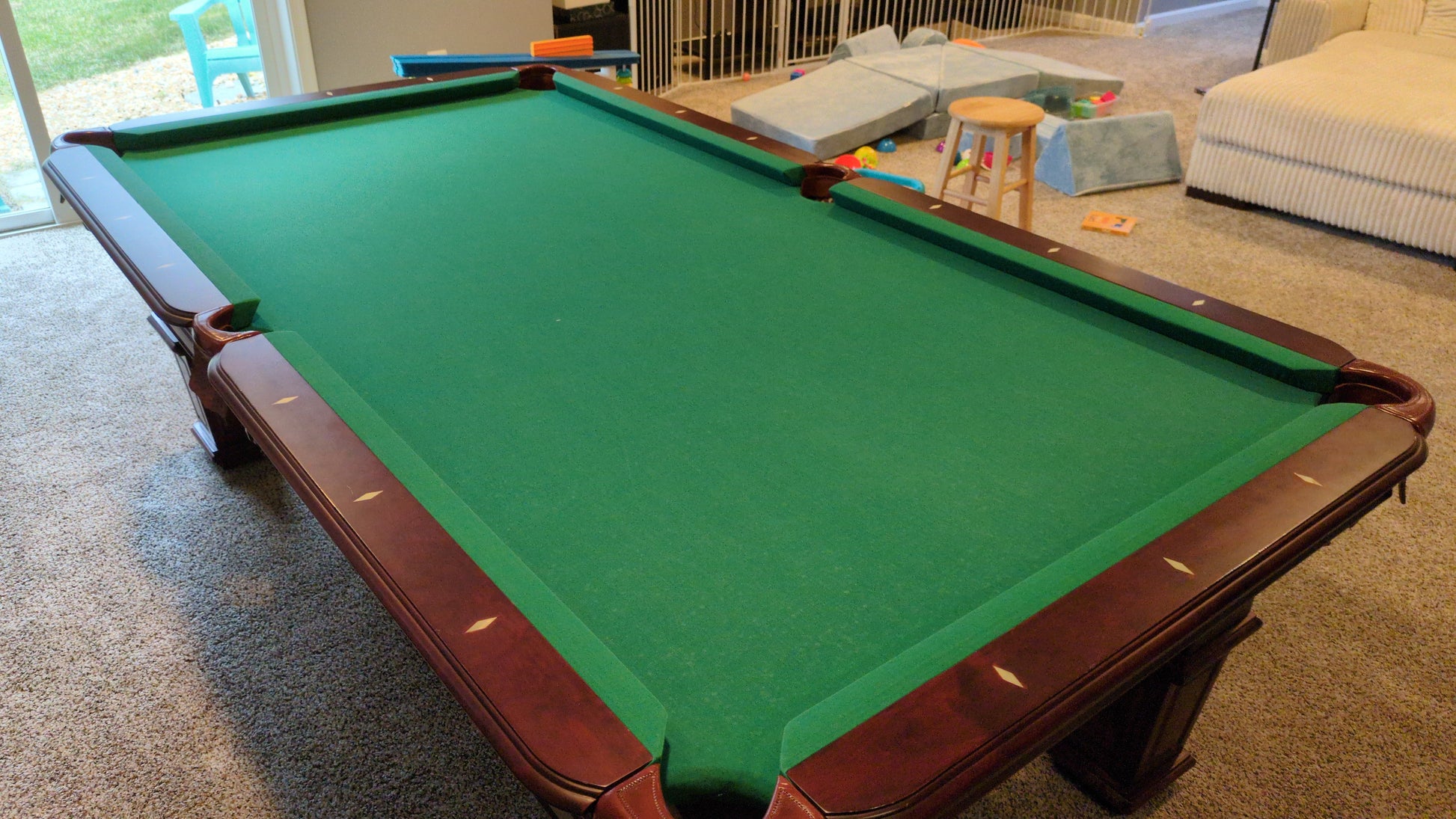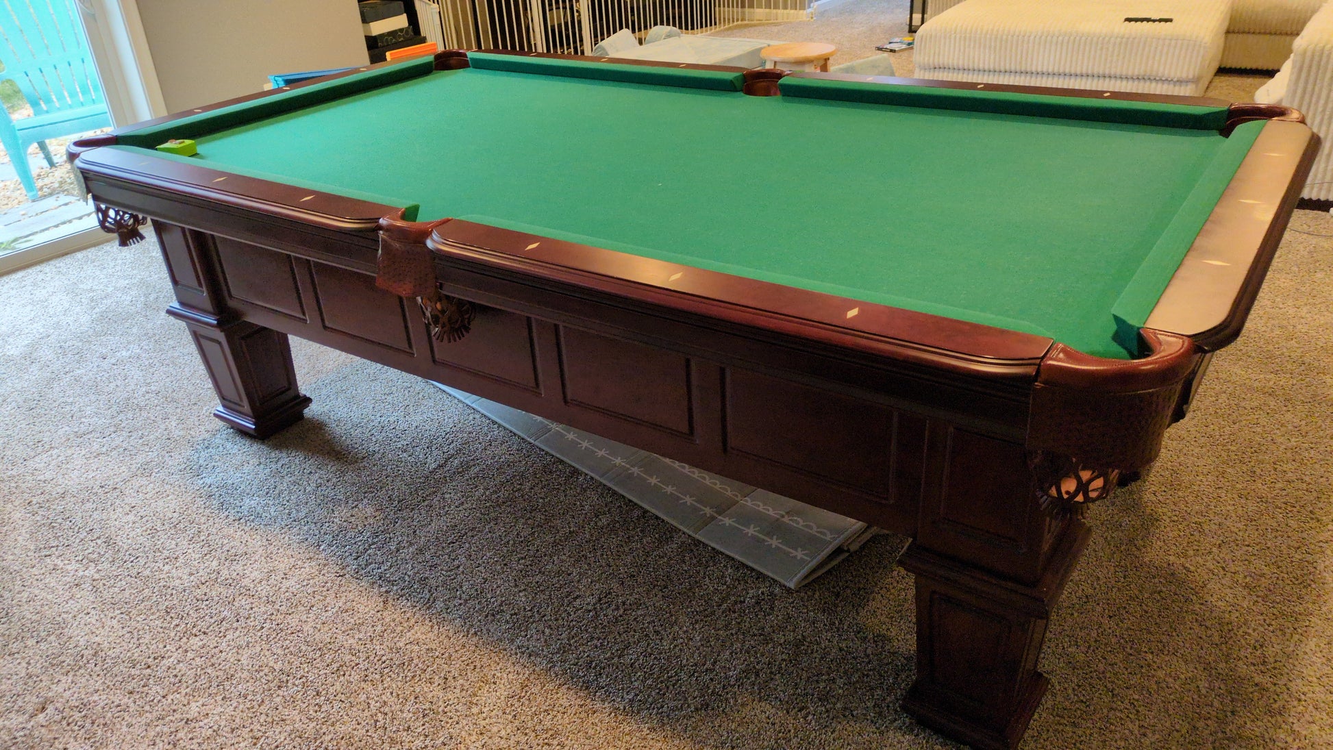 - Cost of the table includes the table and any noted accessories, all move costs to move, setup and level the table within 20 miles of Fredericksburg, VA and optional re-felting of the table upon arrival using Championship Invitational felt with Teflon coating in the color of the buyer's choosing or save $150 off the listed price by reusing the existing felt.