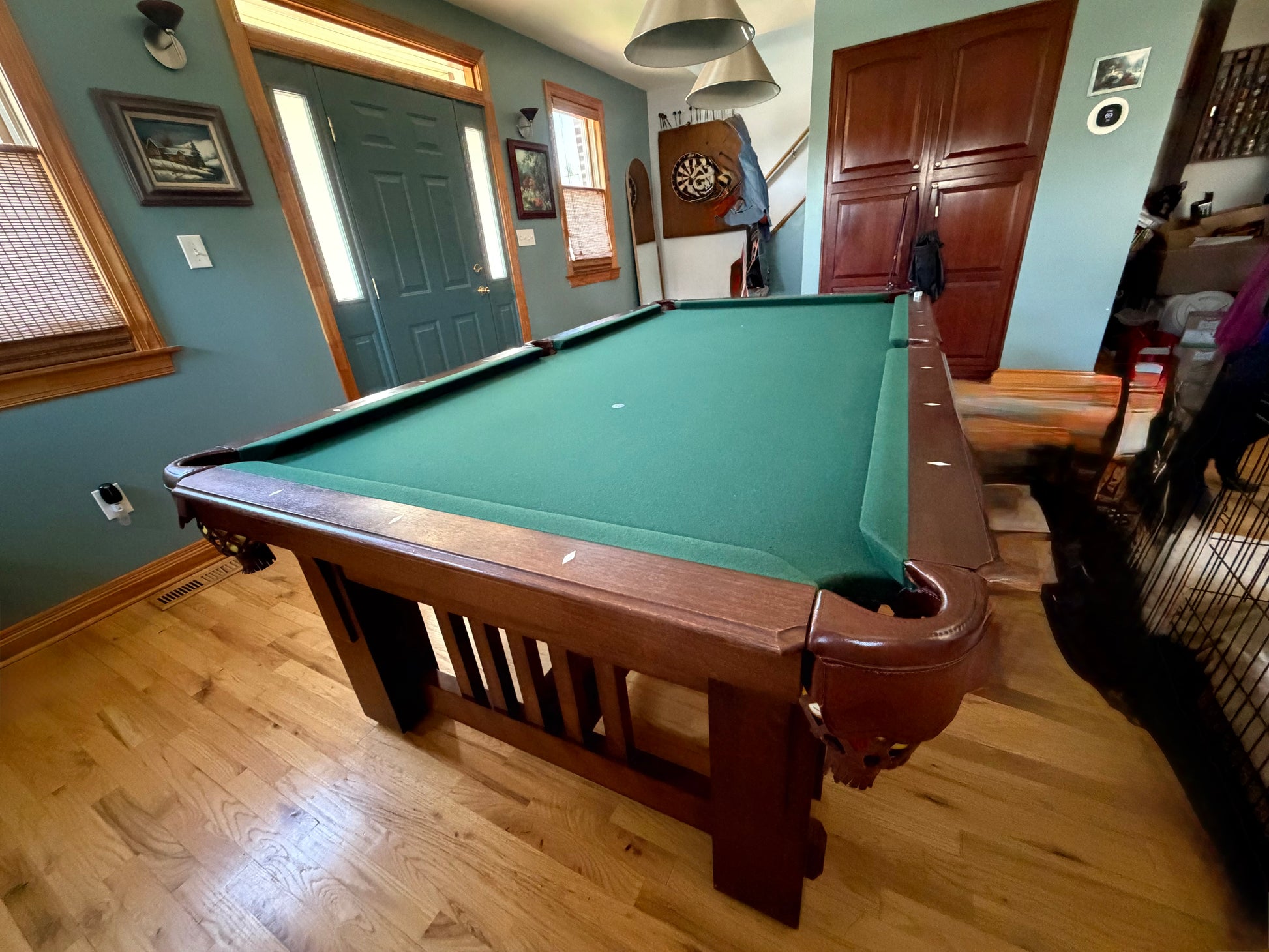 - Cost of the table includes the table and any noted accessories, all move costs to move, setup and level the table within 20 miles of Nottingham, MD and optional re-felting of the table upon arrival using Championship Invitational felt with Teflon coating in the color of the buyer's choosing or save $150 off the listed price by reusing the existing felt.