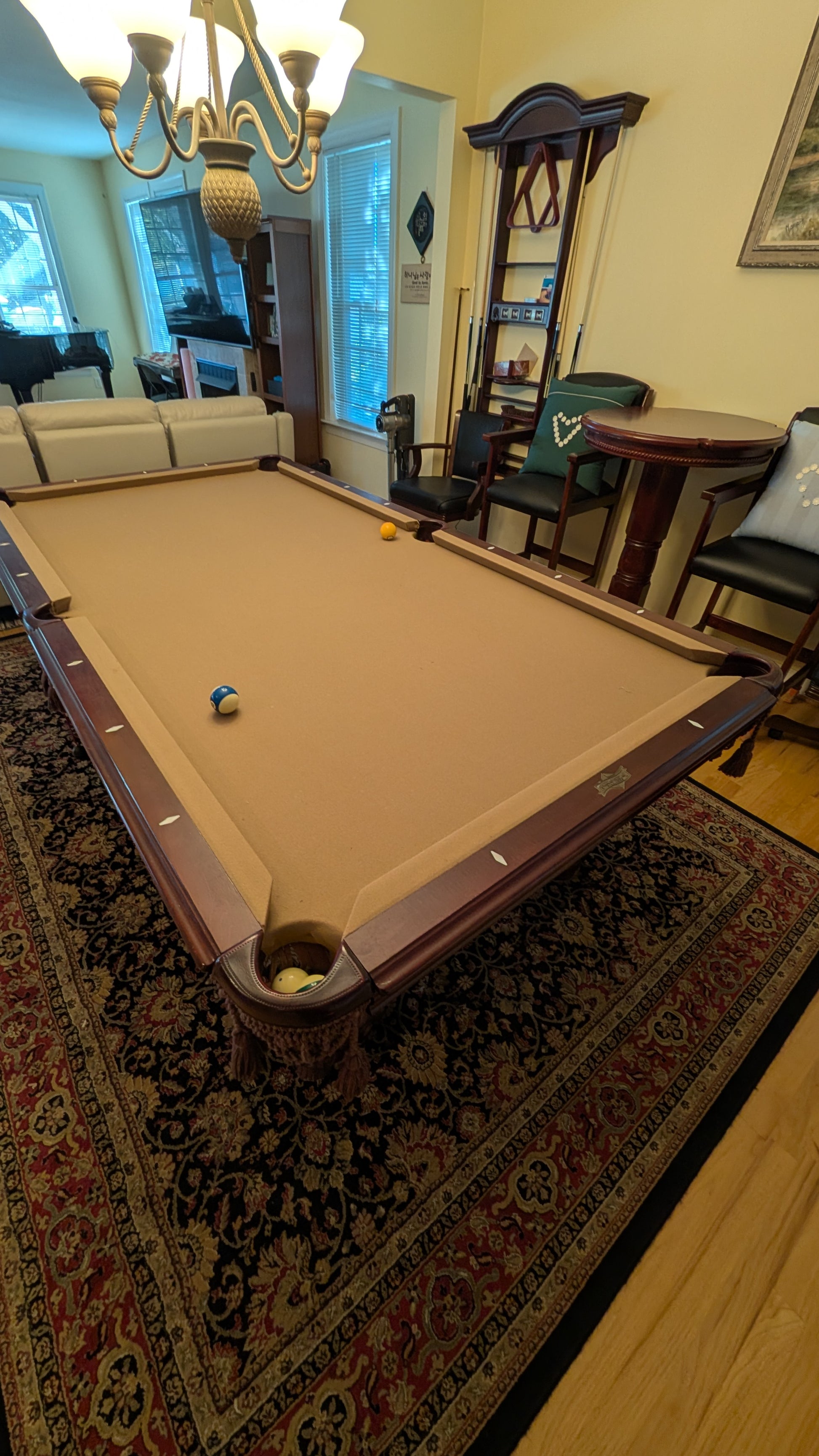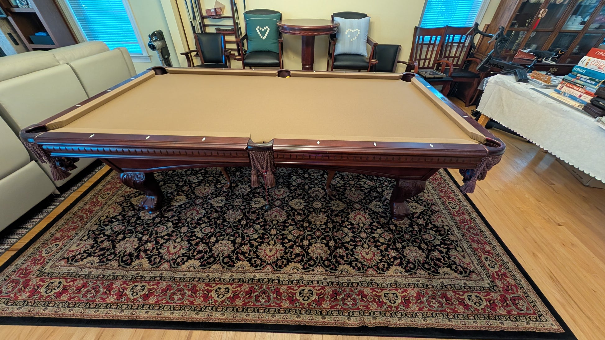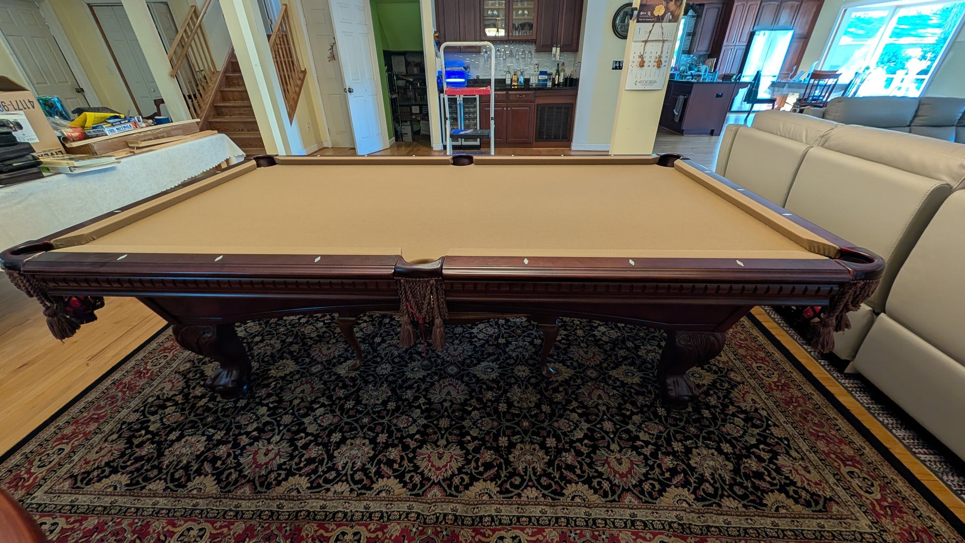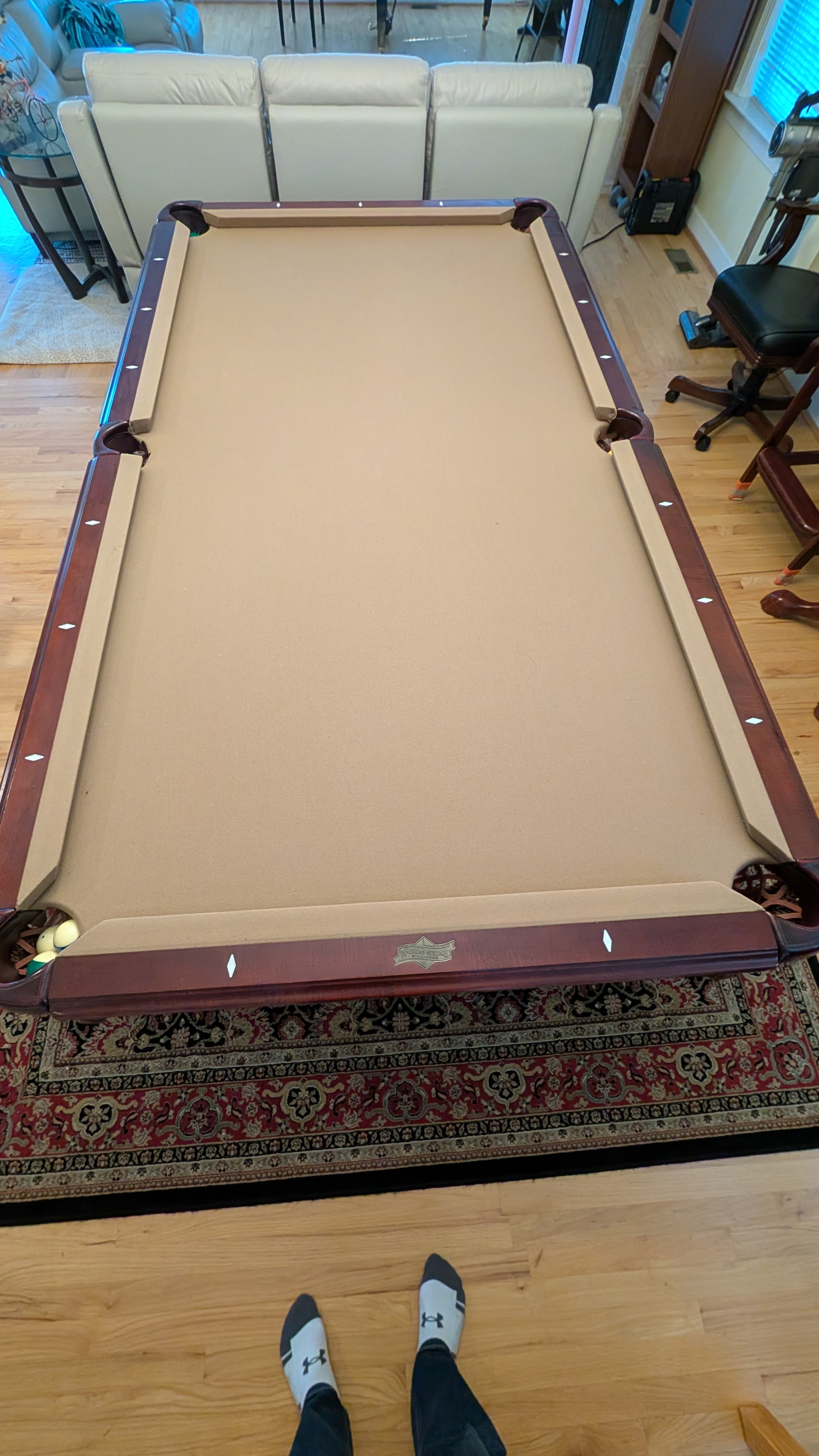 - Cost of the table includes the table and any noted accessories, all move costs to move, setup and level the table within 20 miles of Norfolk, VA and optional re-felting of the table upon arrival using Championship Invitational felt with Teflon coating in the color of the buyer's choosing or save $150 off the listed price by reusing the existing felt.
