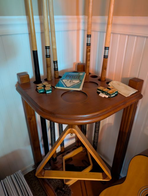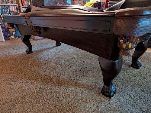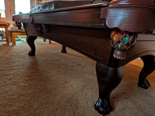 - Sellers note: Bought around 2003 new, moved only once professionally. Pockets are leather, and need some cleaning, but otherwise in great condition. Really hasn't been played on much...felt is clean and free from defects. Cues are straight.