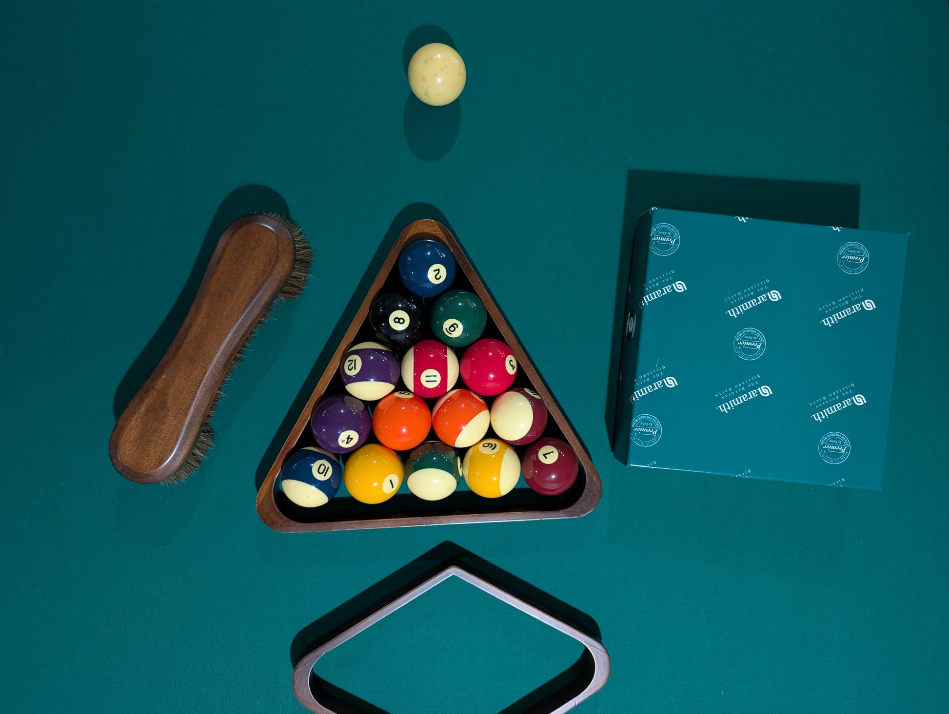 - Accessories Included: Simonis cloth pool on the table, Aramith Premier Belgian ball set, Table cover, Players G-2208N Cues 1x18oz, 2x19oz, 2x20oz, 1x210z, Cue bridge, Wall mount for cues, Ball racks, table brush, other accessories.