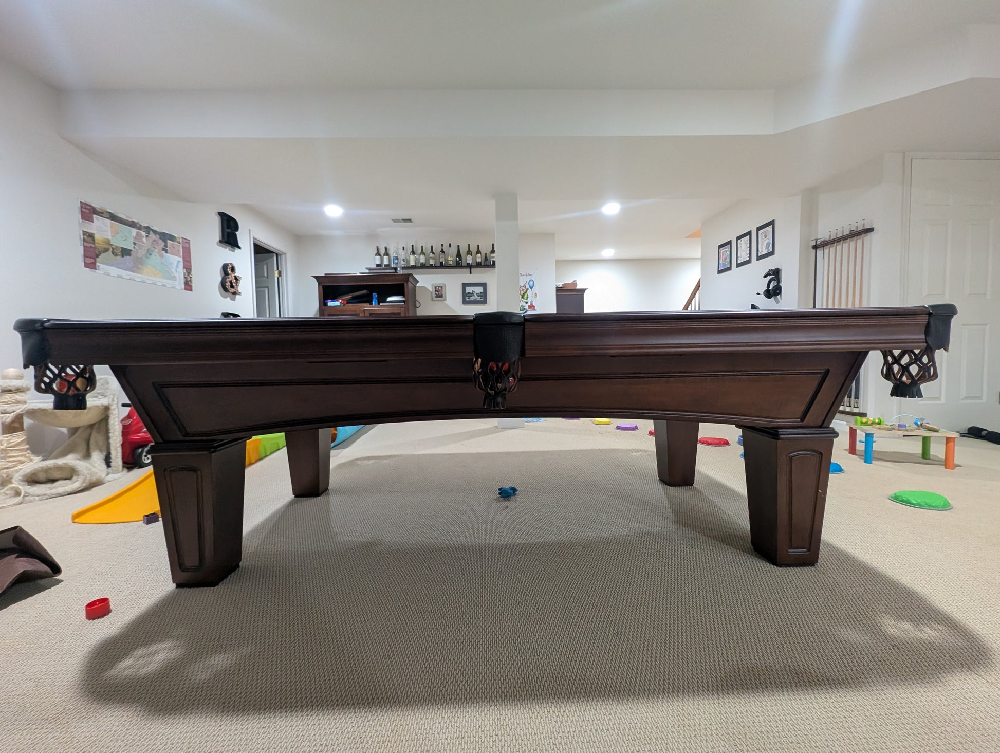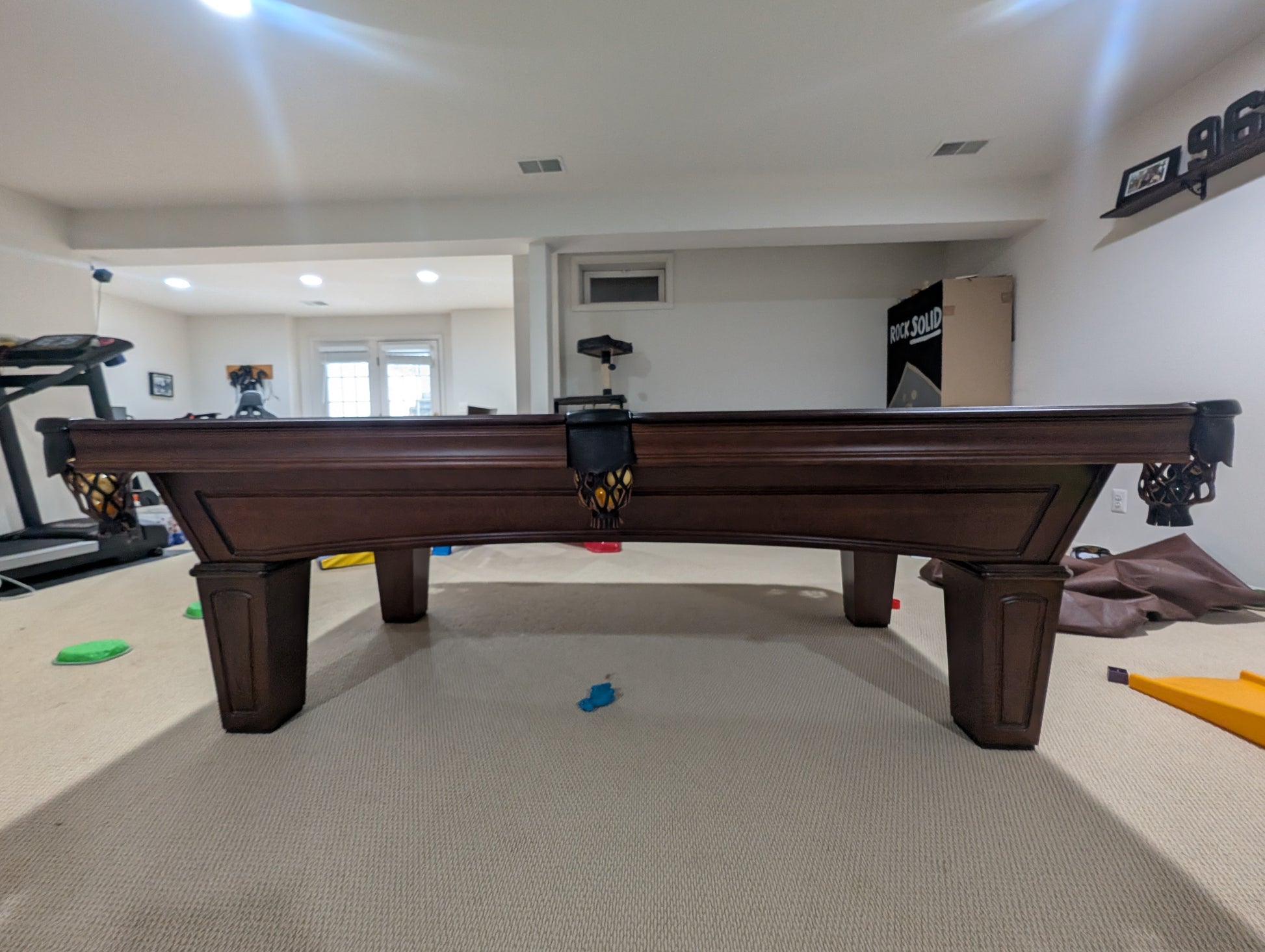 - Cost of the table includes the table and any noted accessories, all move costs to move, setup and level the table within 20 miles of Manassas, VA and optional re-felting of the table upon arrival using Championship Invitational felt with Teflon coating in the color of the buyer's choosing or save $150 off the listed price by reusing the existing felt.
