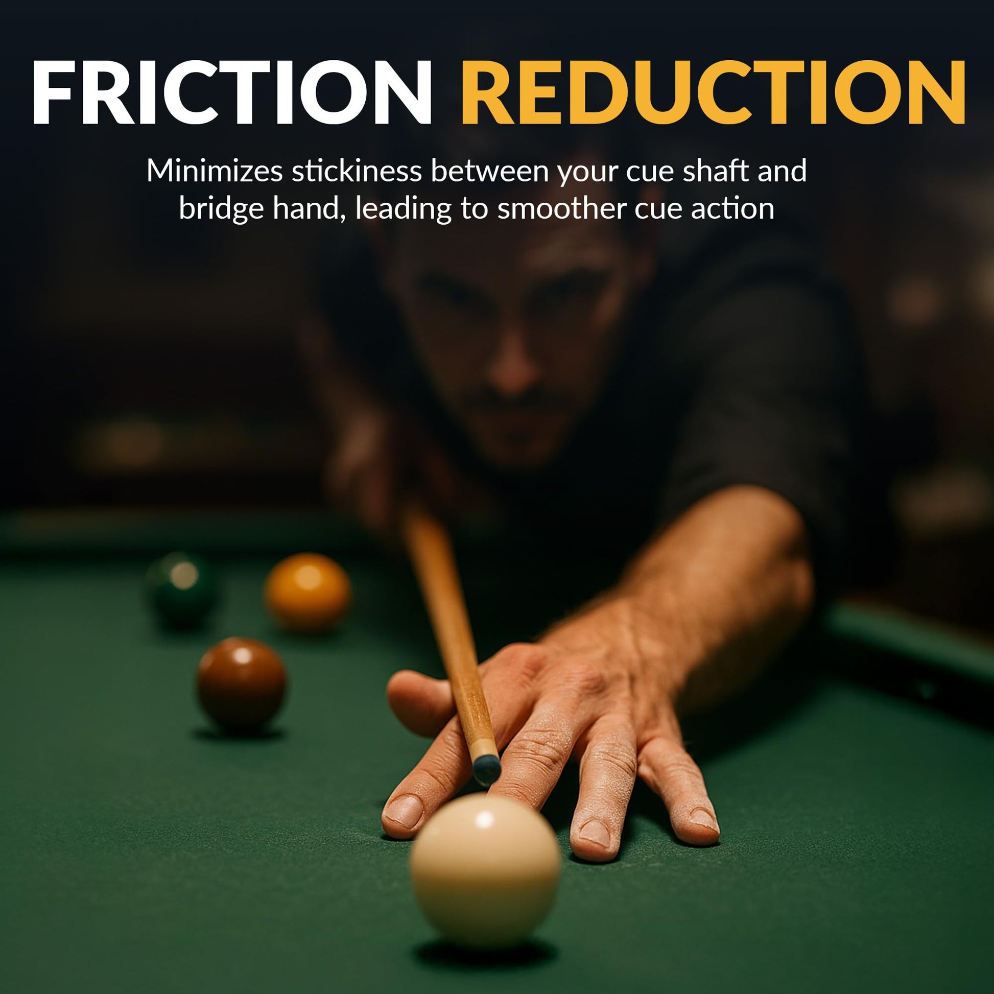 - MINIMIZES FRICTION FOR SMOOTHER STROKES – Designed to reduce resistance between bridge hand and cue, this talc cone pool chalk for hands improves shot consistency and allows for a fluid, confident game experience in any home or rec room.